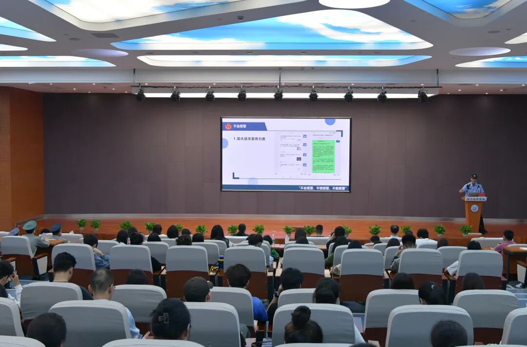 倪警官以近期发生的各种校园安全事件为例,细致讲解了近期警情的常见形式,分析警情发生的深度原因;从发生在学生身边的典型案例切入,列举了常见诈骗手段并警示在场师生,面对与钱款相关的电话、信息、链接等一定要提高警惕,保持清醒头脑,抵制各种诱惑,识破诈骗分子骗局,远离陷阱;号召所有师生一定要注册安装“国家反诈中心”APP和“一警一码”小程序,以便在接到诈骗电话或点击诈骗链接网址时,社区民警能够迅速接到反馈并及时电话联系,提醒被诈骗风险,共同防范电信网络诈骗,阻断诈骗发生。倪警官还从日常校园安全方面的主题展开讲解,参会师生纷纷表示受益匪浅。