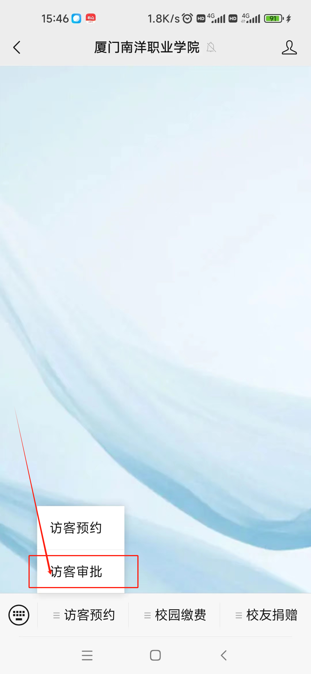 或者微信搜索并关注公众号:厦门南洋职业学院--->点击:访客审批后进入页面