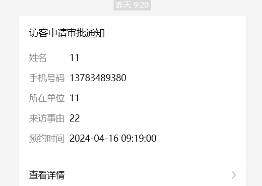 二、 被访问人审批完成后,消息流转到部门负责人审批