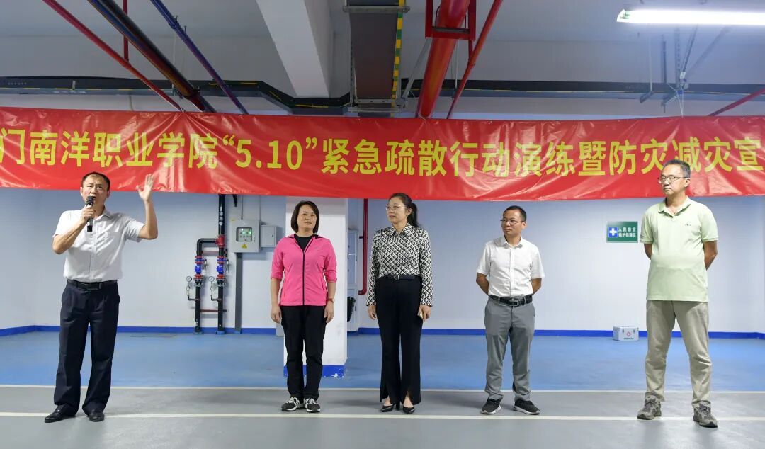 执行校长钟石根在讲话中肯定了全体师生在演练中的沉着冷静和稳定有序,强调灾难无情、生命无价,希望全校师生牢固树立安全意识,切实掌握逃生、自救技能,珍爱生命,共建和谐平安校园。最后,执行校长钟石根宣布:厦门南洋职业学院防灾减灾宣传周正式启动!